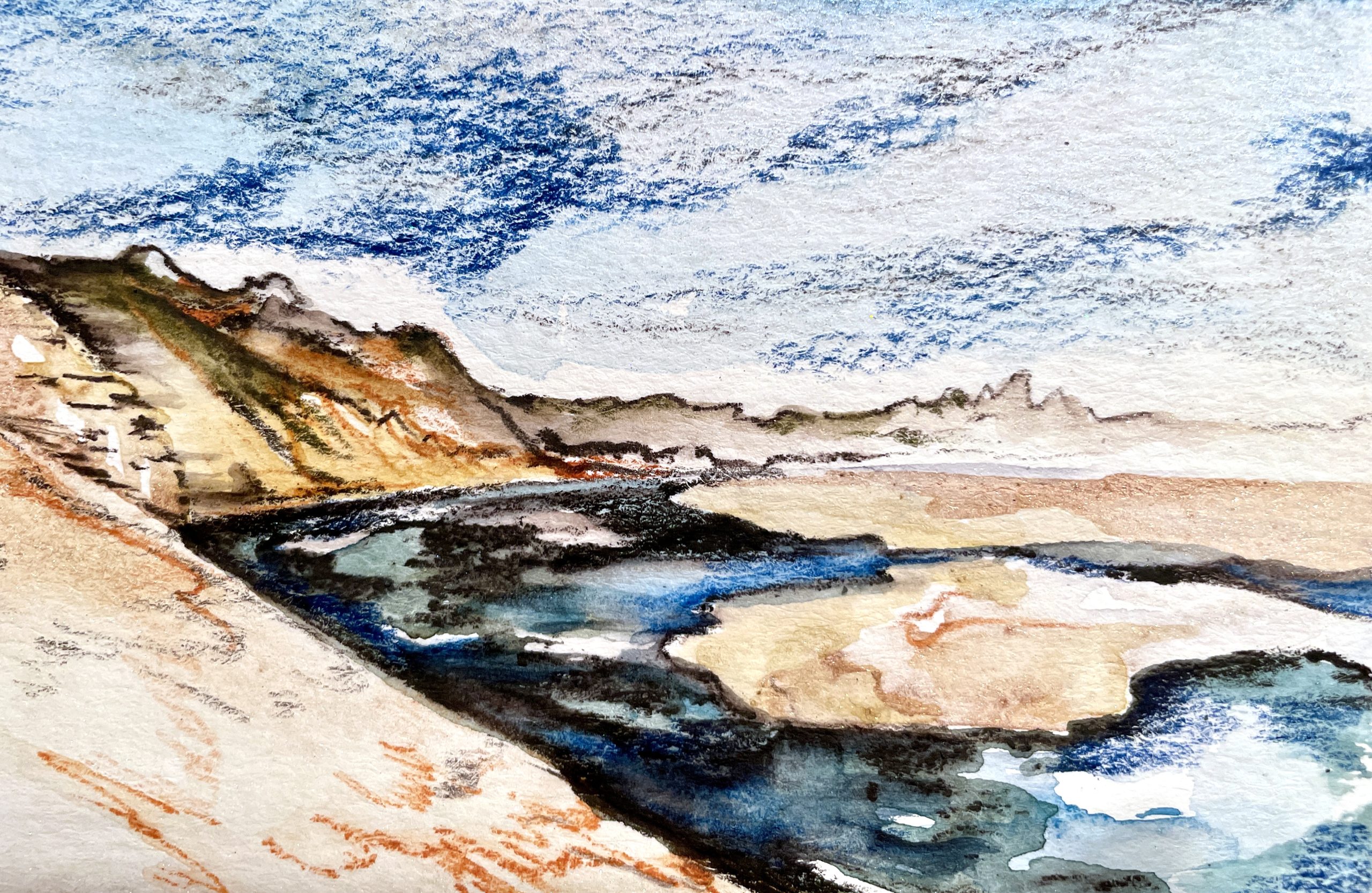 Watercolor and Ink Pencil on Cold Press 140 lb watercolor paper 4″ x 6″ Original $85. Prints available.