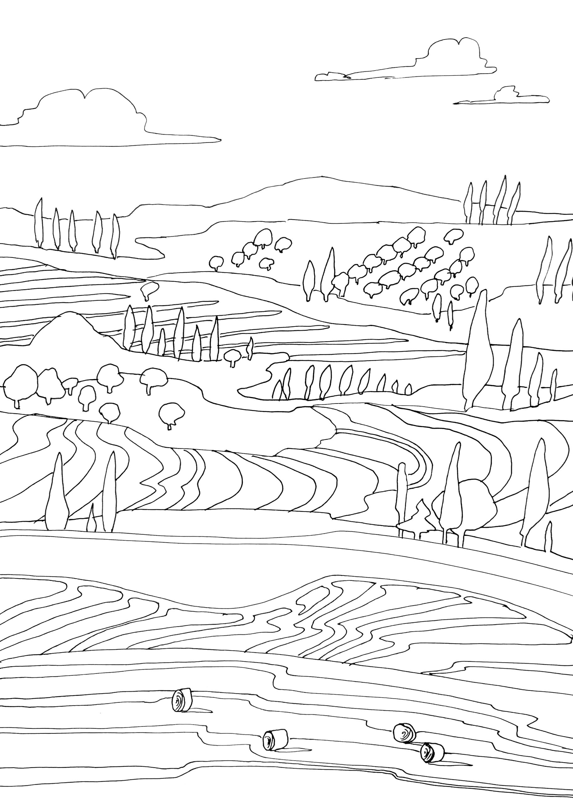 Val d’Orcia Field Ink Drawing, Tuscany, 2023