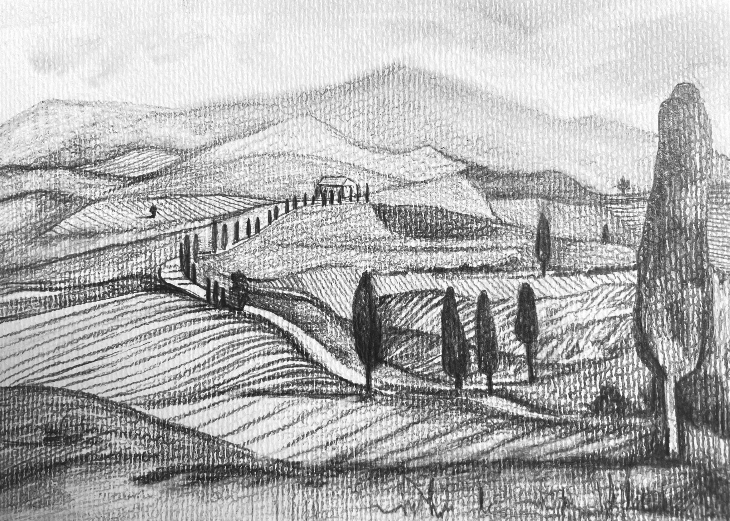 Val d’Orcia Landscape Drawing, Tuscany, 2023